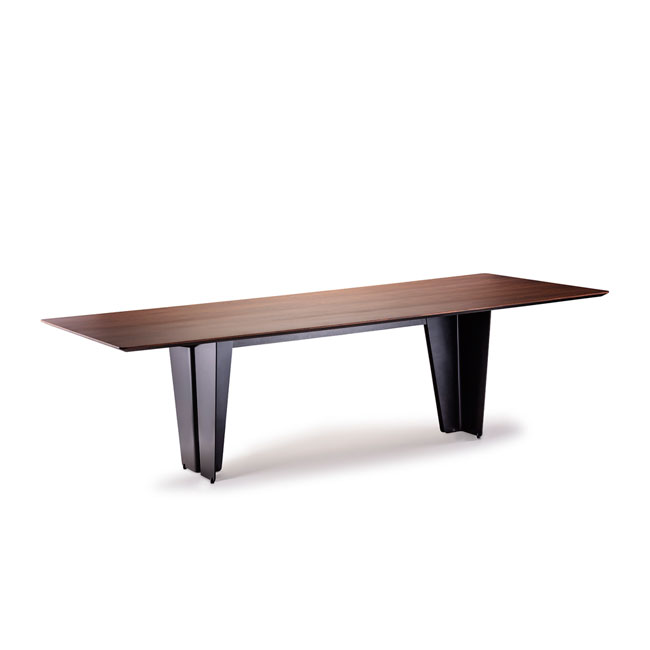 Estrutura em aço carbono pintado, sapata de nylon, tampo em MDF folhado, pau ferro, freijó carvalho americano e BP micro texturizado.
